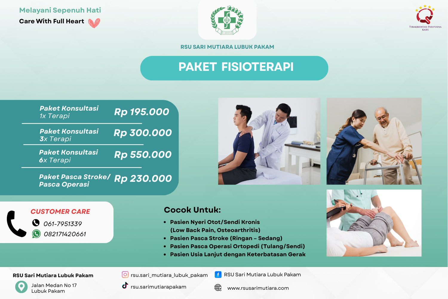 Jangan biarkan nyeri dan keterbatasan gerak mengendalikan hidup Anda. Dapatkan solusi terbaik hanya di RS Sari Mutiara Pakam, karena kami berkomitmen memberikan terapi yang aman, tidak melelahkan, dan disesuaikan dengan kemampuan Anda.